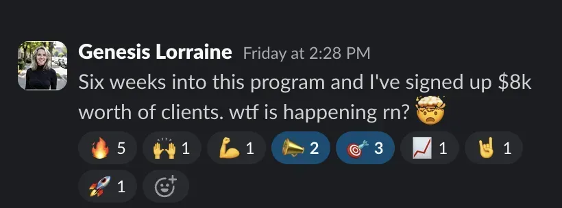 "Went from local, in-person lessons to building a remote coaching business, growing my audience by 30K+, and now bringing in $10k/mo consistently."